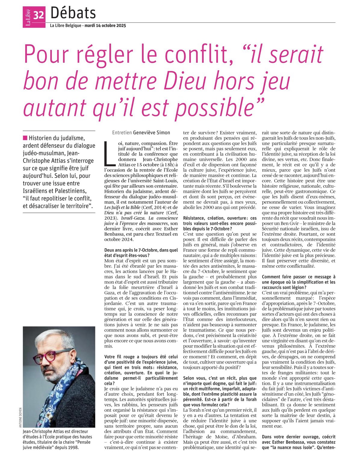 Loi, nature, compassion. Être juif aujourd’hui Conférence de Jean-Christophe Attias (EPHE/PSL, Paris) 15 octobre 2025 École des sciences philosophiques et religieuses (Bruxelles) Lire l’intégralité du texte de cette conférence sur Academia.edu.